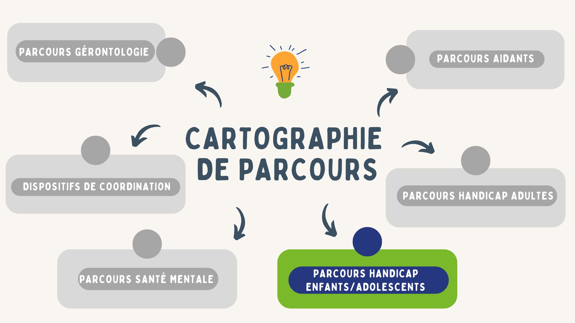 Le DAC est ravi de vous annoncer la mise en ligne d'une nouvelle cartographie des acteurs dédiée au Parcours Handicap Enfants/Adolescents. Cette carte vient enrichir celle déjà existante, qui inclut déjà les parcours suivants :